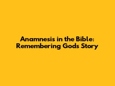 Anamnesis In The Bible: Remembering God's Story