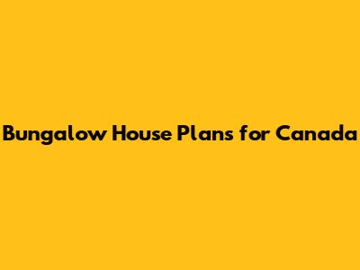 Bungalow House Plans For Canada