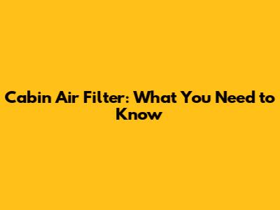What Exactly is a Cabin Air Filter?