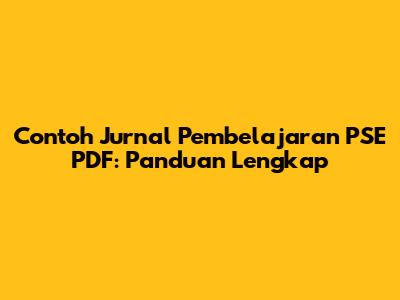 Contoh Jurnal Pembelajaran PSE PDF: Panduan Lengkap
