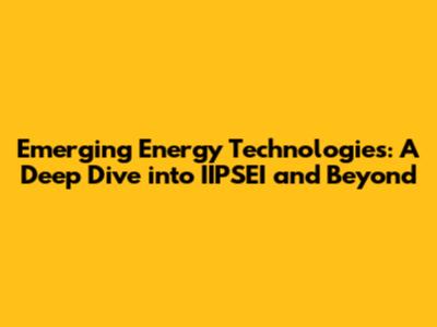 Let's imagine IIPSEI is an organization or initiative focused on promoting and developing these emerging energy technologies. Hypothetically, its role could involve: