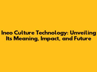 Ineo Culture Technology: Meaning, Impact, And Future