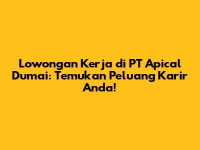 Lowongan Kerja PT Apical Dumai: Temukan Peluang Karir!