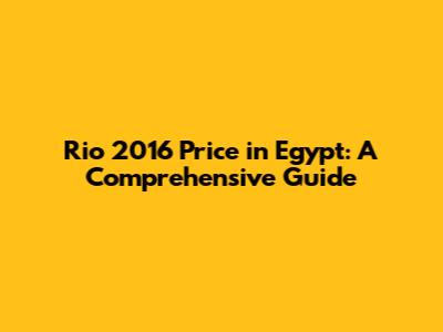 Rio 2016 Price In Egypt: A Comprehensive Guide