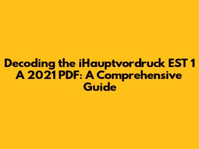 Understanding The IHauptvordruck EST 1 A 2021 PDF